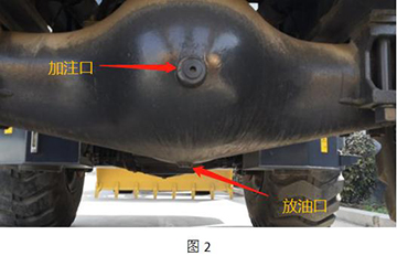 6、     工(gong)作完成(cheng)后(hou),将(jiang)车(che)辆停平稳,拉紧手制动,将(jiang)前(qi𓆏an)后(hou)桥的(de)放油塞(图2)堵拆下(xia),放出(chu)桥包里的(de)油液,用(yong)备用(yo♓ng)桶(tong)收集并(bing)妥(tuo)善(shan)处(chu)理(li)。将(jiang)塞堵清理(li)干净。